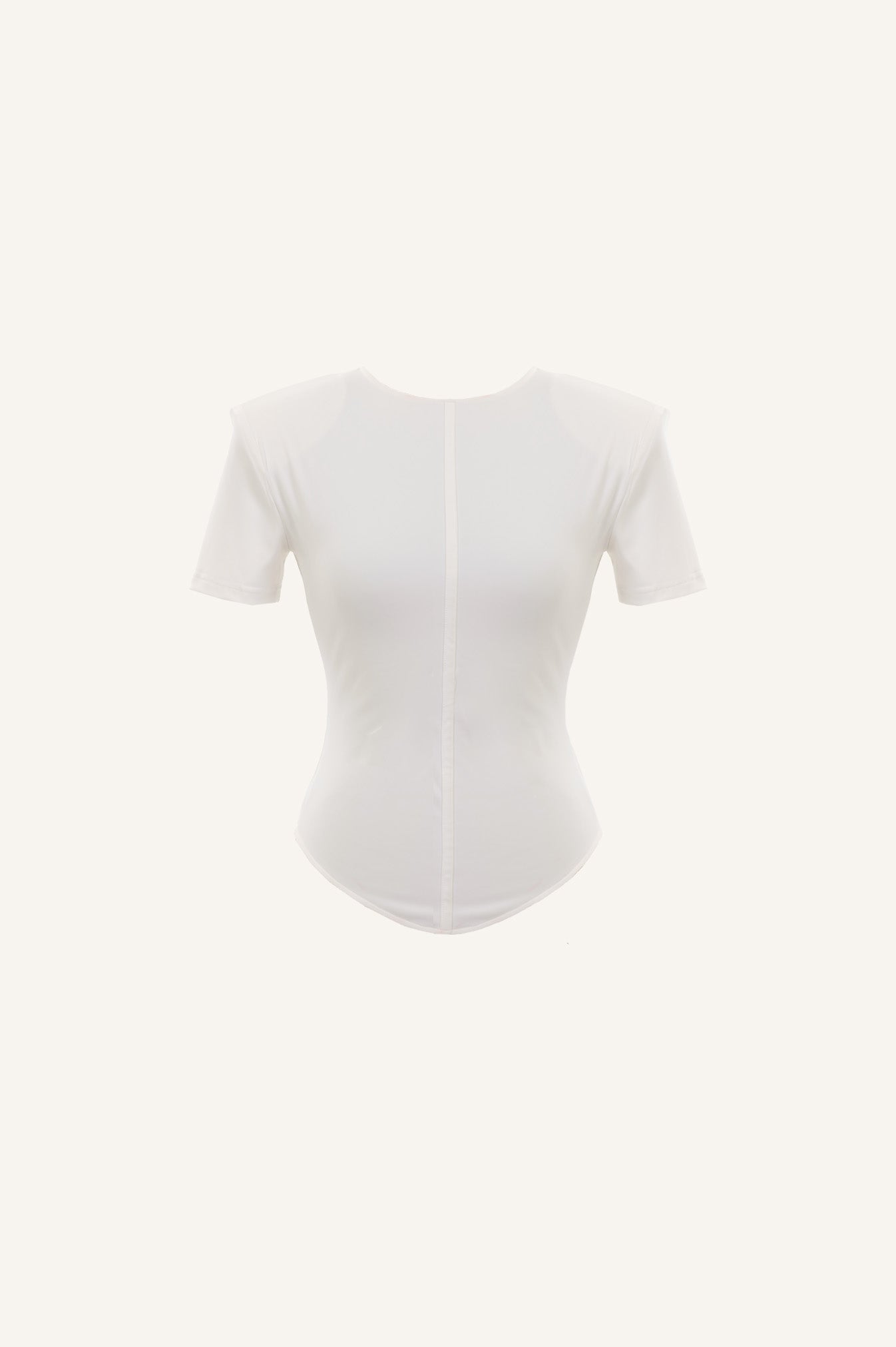 Силуетний білий топ з плечиками, коротким рукавом та декоративним швом.