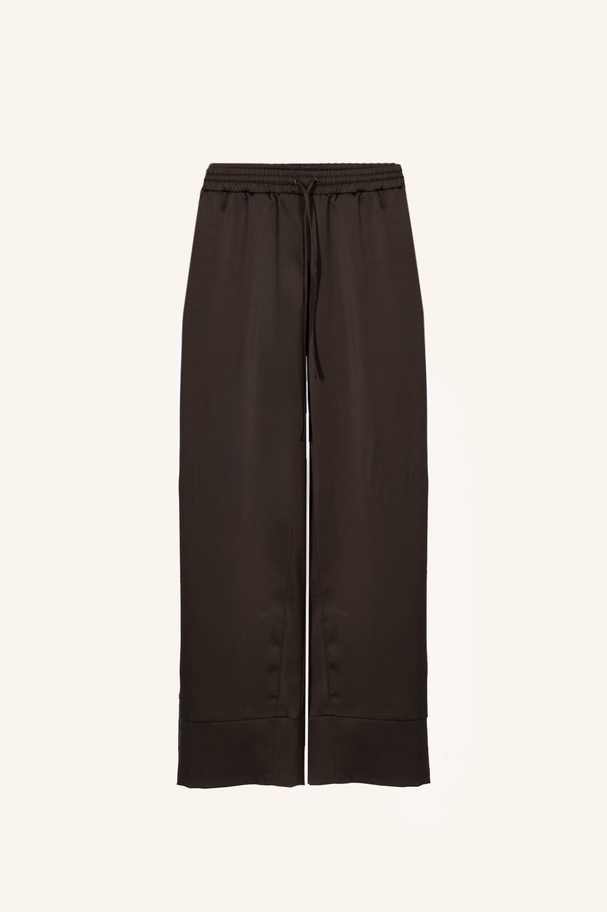 Шовкові штани вільного силуету у кольорі "dark chocolate" з регулюючим поясом на резинці та боковими кишенями.