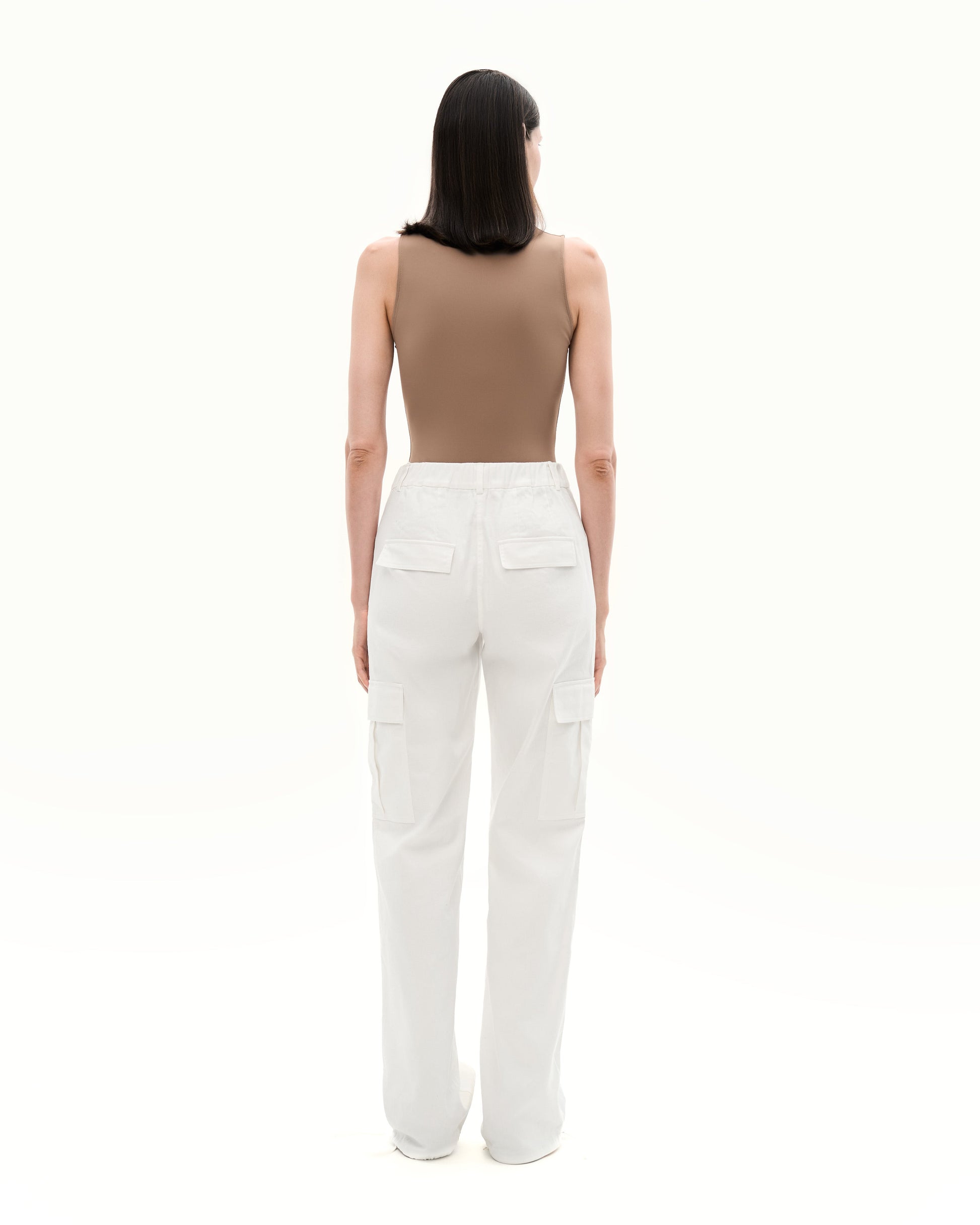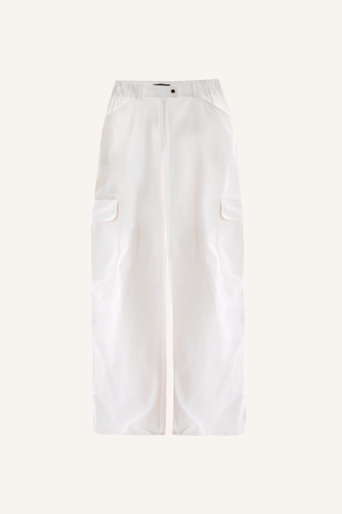 Штани карго з накладними кишенями у стилі мілітарі по довжині брюк та двома задніми кишенями, фронтальною застібкою на блискавці та металевій кнопці. Ширина пояса та нижньої частини штанів регулюється.