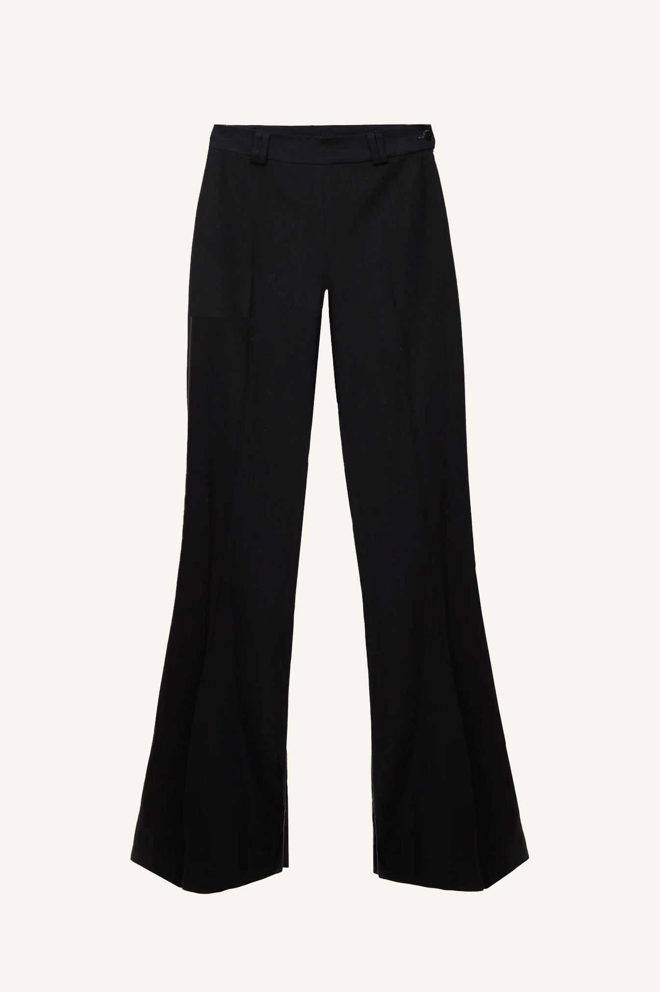 Штани кльош з високою талією та боковою застібкою на блискавці і ґудзику на лінії талії.