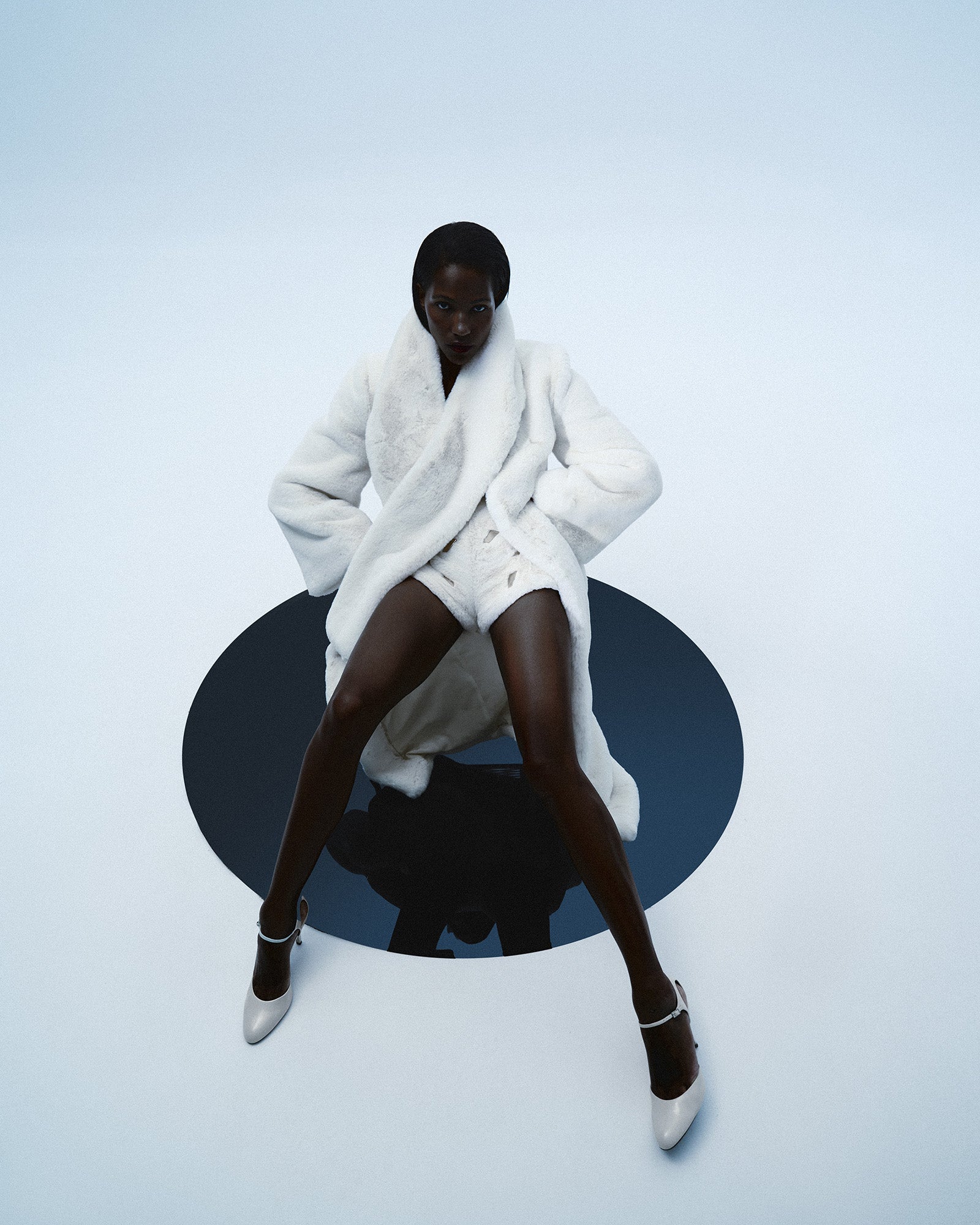 Мікро шорти з штучного хутра з знаковими золотими деталями у формі логотипу бренду.