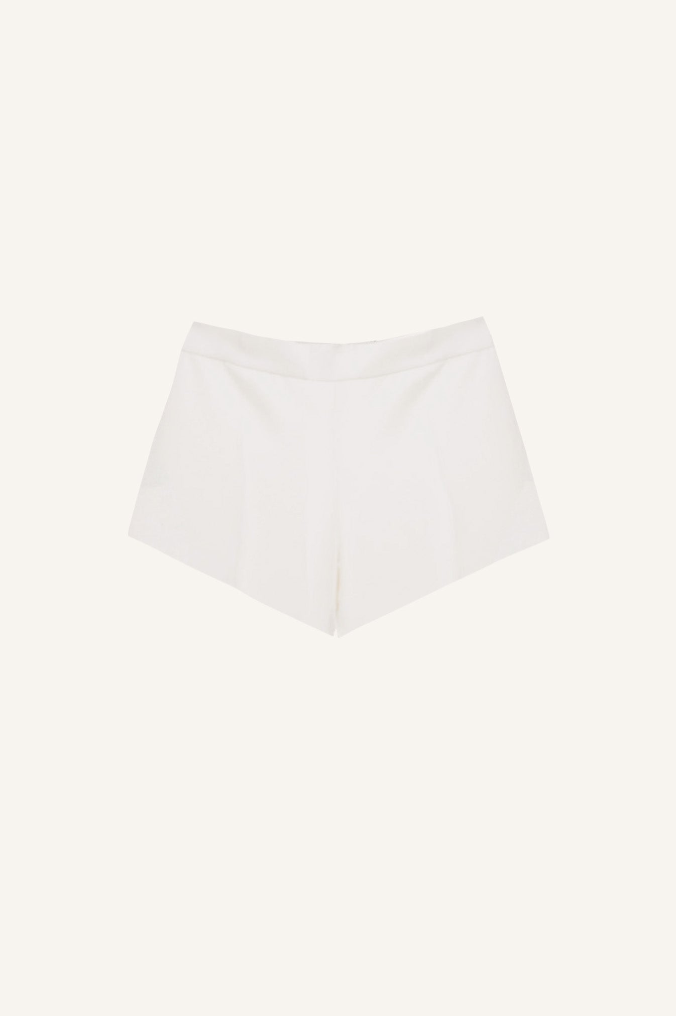 Мікро шорти з високою лінією талії та боковою застібкою на блискавці та ґудзику по лінії талії.
