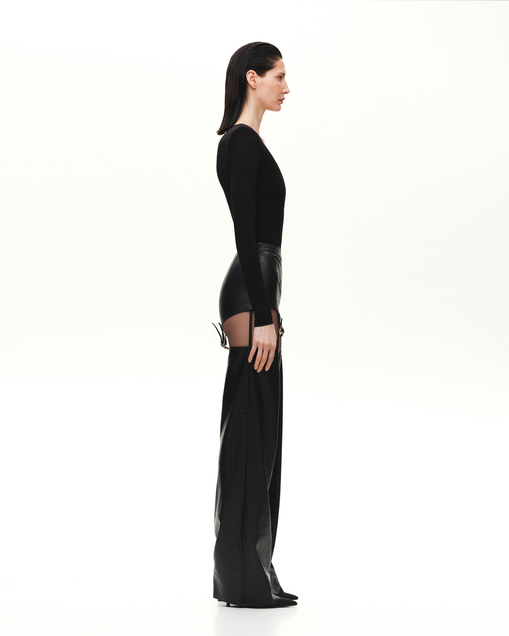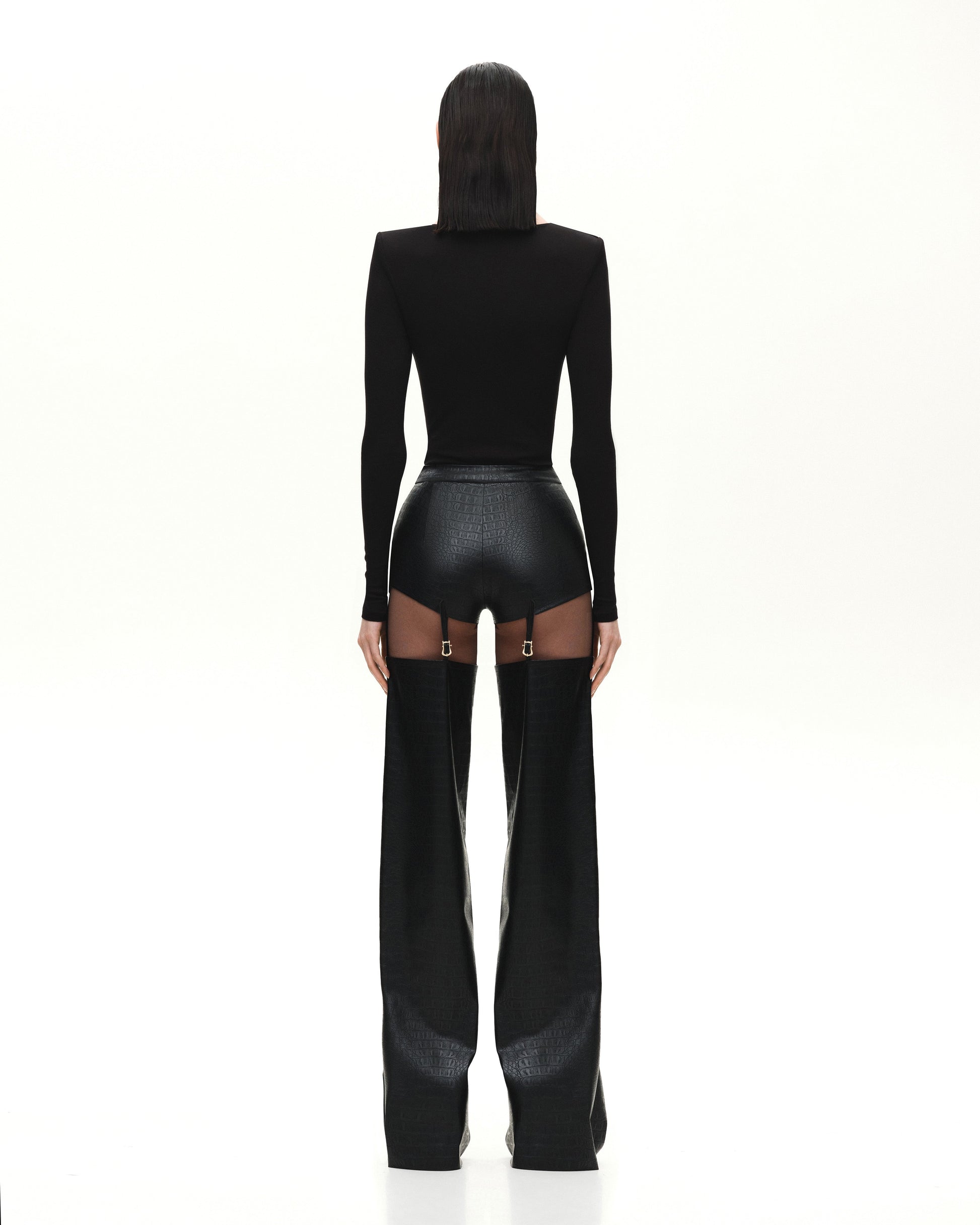 ШКІРЯНІ ШТАНИ-ТРАНСФОРМЕРИ З ДЕКОРАТИВНИМИ ПІДТЯЖКАМИ