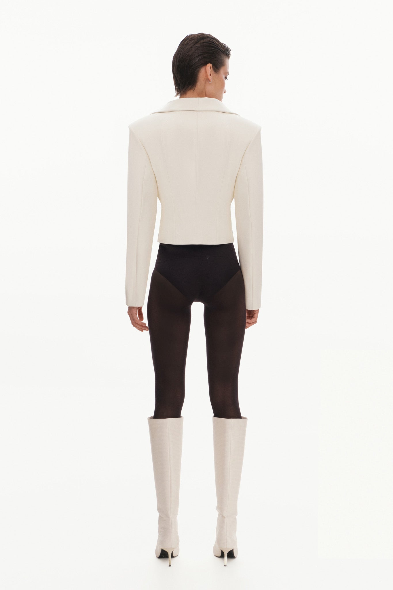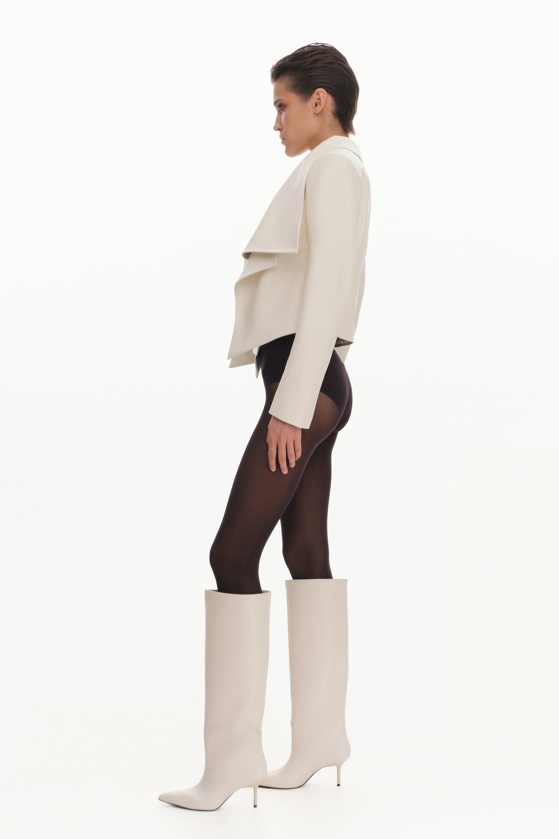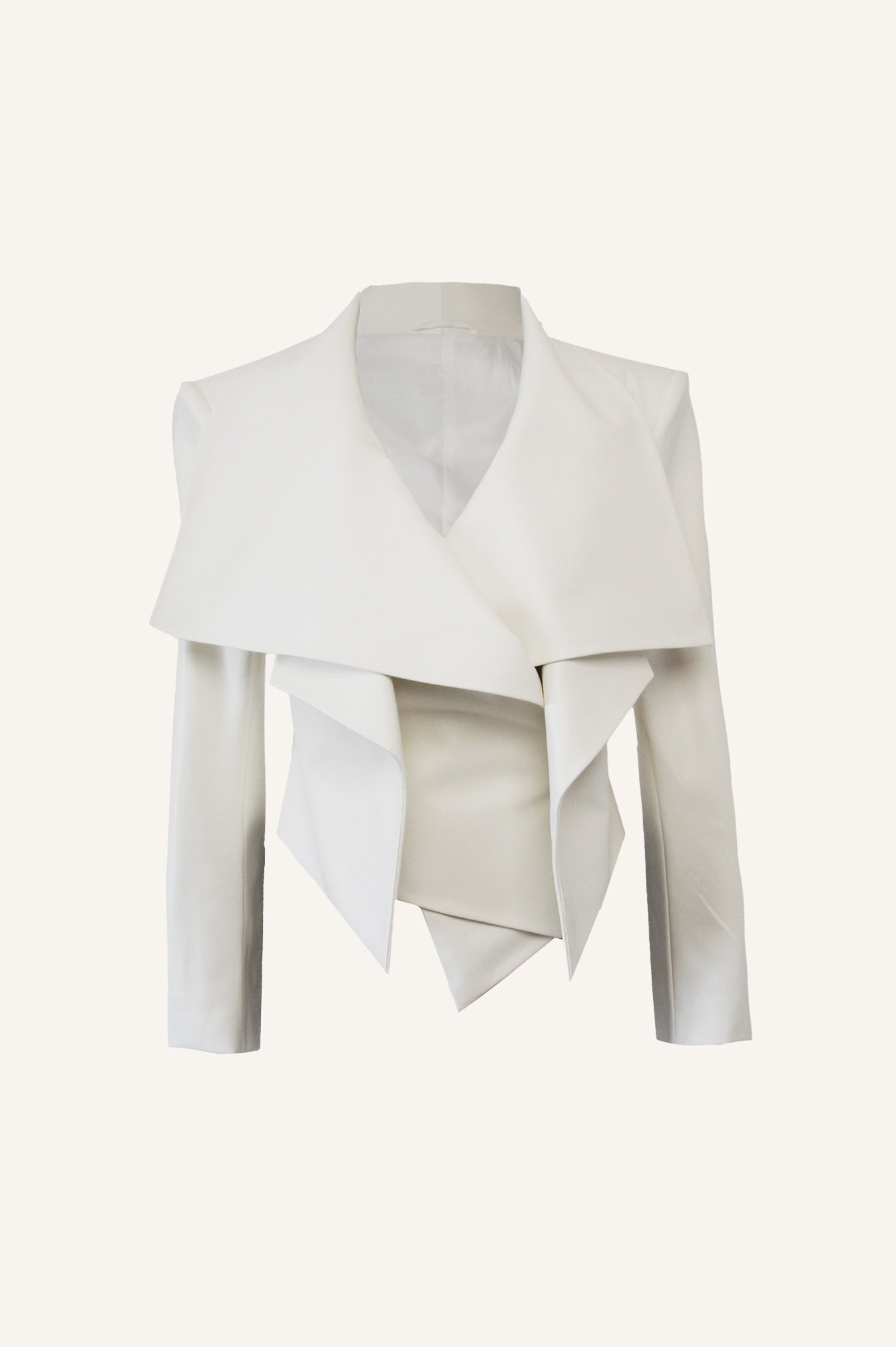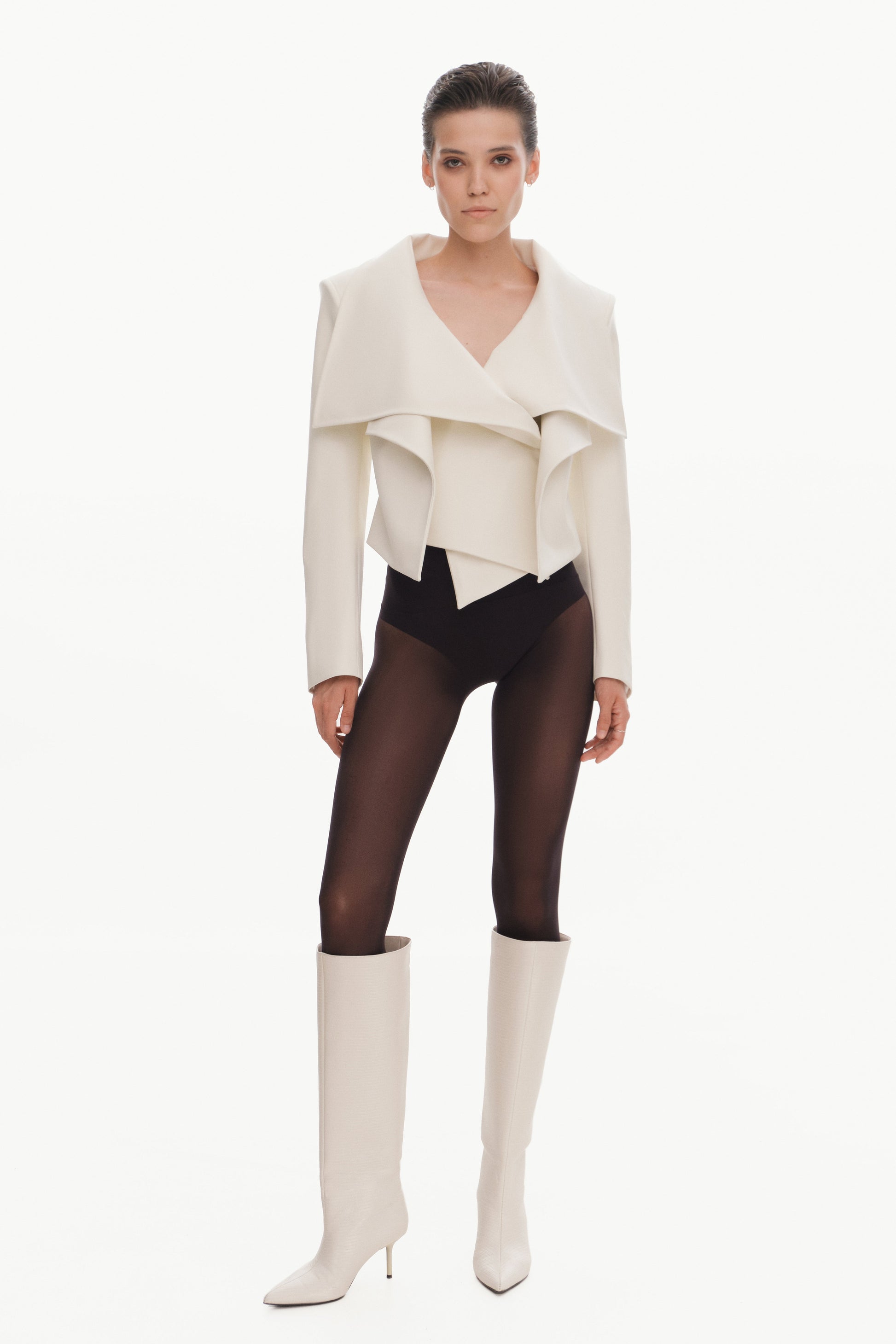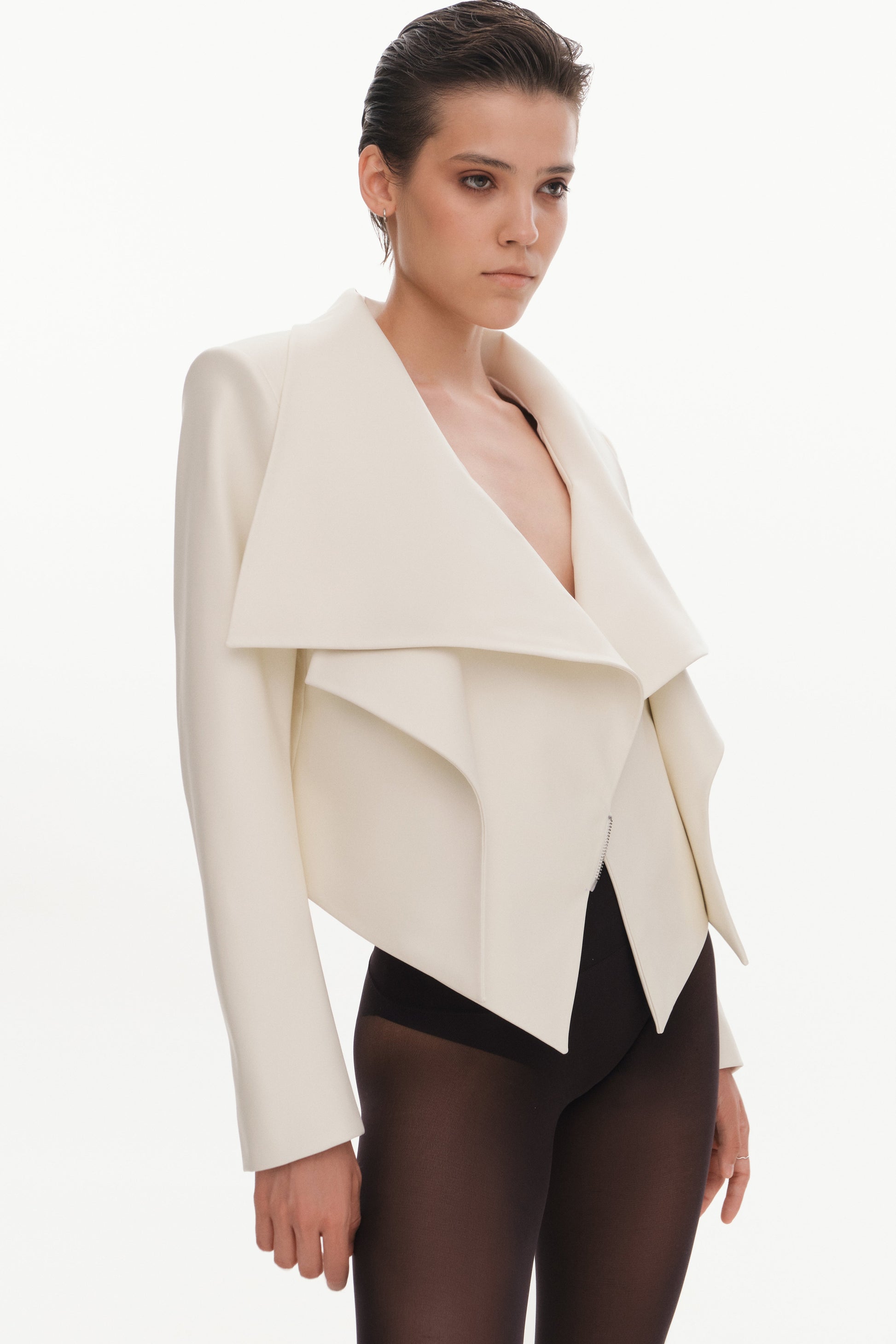 Куртка з шкіри Vegan з широким коміром та подвійними бортами. Внутрішня бічна застібка на коротку блискавку. Шовкова підкладка.